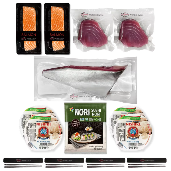 Gather your family for a night of sushi-liscious fun! Our Simple Sushi Making Kit bundle includes sashimi-grade fish, instant rice, and stainless steel chopsticks for the ultimate sushi-making experience. Fresh, delicious, and full of quality family time - dinner doesn't get better than this!